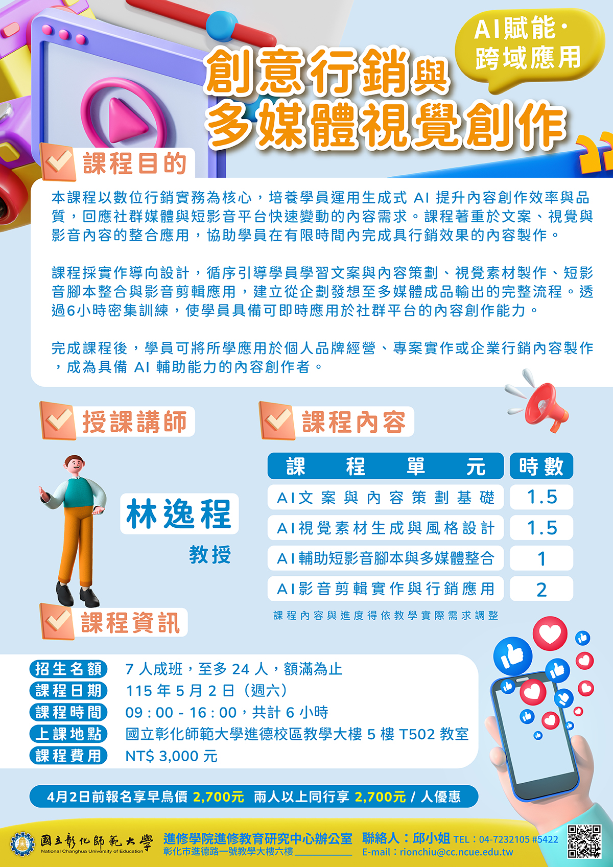 (二)課程時間:115年5月2日 (週六)09:00-16:00,共計6小時。